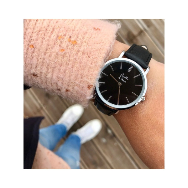 Ø 32 mm - Cadran noir avec index assortis - Montre fournie dans son écrin luxe spécifique - Bracelet en cuir noir - Montre fabriquée en France à Besançon.